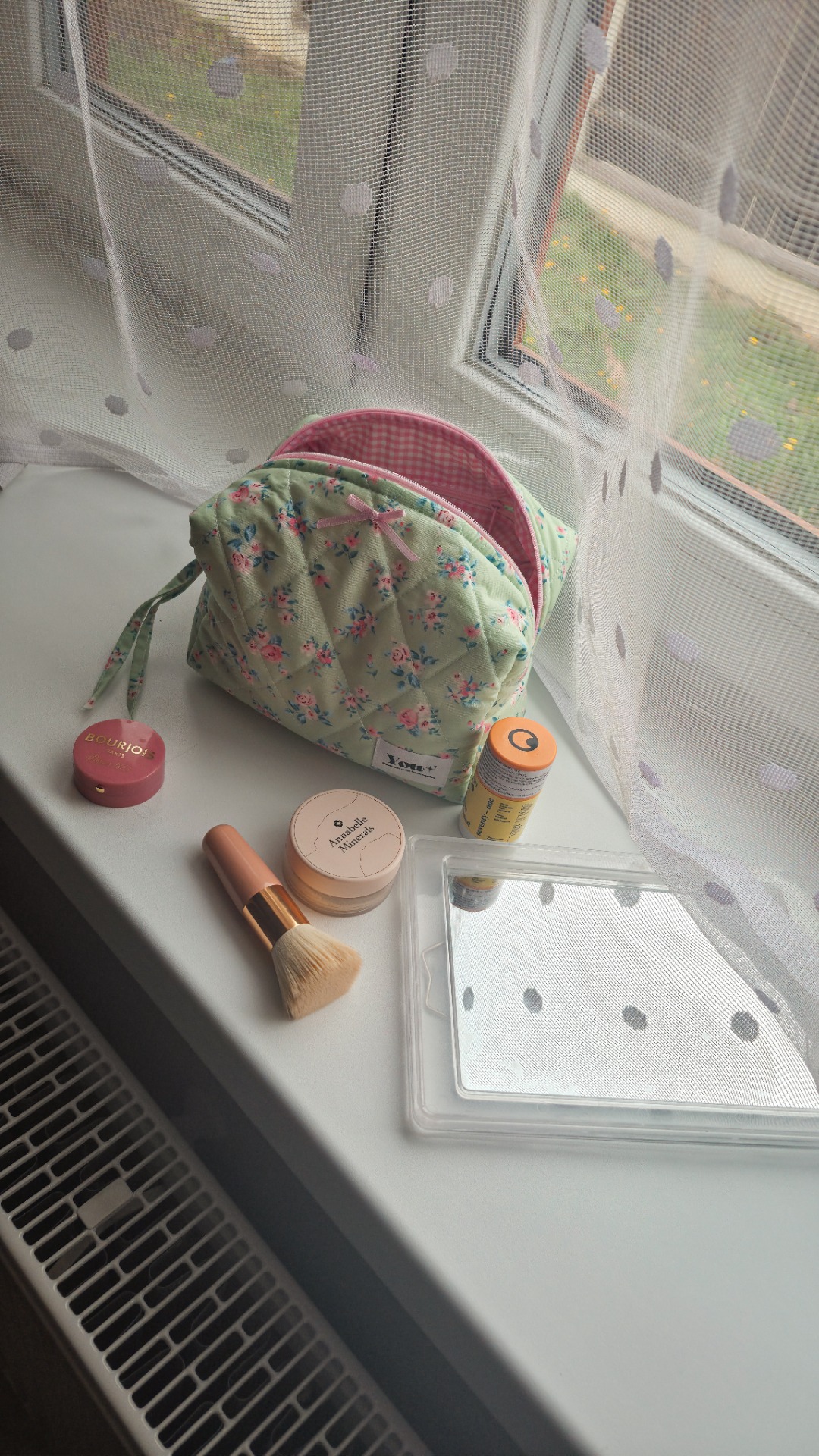Romantická, ženská, rozkošná a mnoho dalšího. Zeleno-růžová jemná kombinace, která potěší. Nově také možnost s vnitřní kapsičkou, viz foto. Pokud o našití kapsičky máte zájem, napište do poznámek u objednávky KAPSIČKA.
